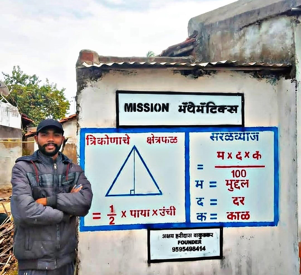 Mission Mathematics (MM) is an educational project Started by 25-year-old youth Akshay Haridas Wakudkar. Under this Project, MM Team decorates the blank walls of the street houses, Schools and other Government Buildings with basic mathematical formulas. The project is carried out at places like main squares and playground, etc. which can be easily viewed by people (especially students) in rural areas. It was started in March 2019 and within a short span of one year it is serving more than 300 villages.