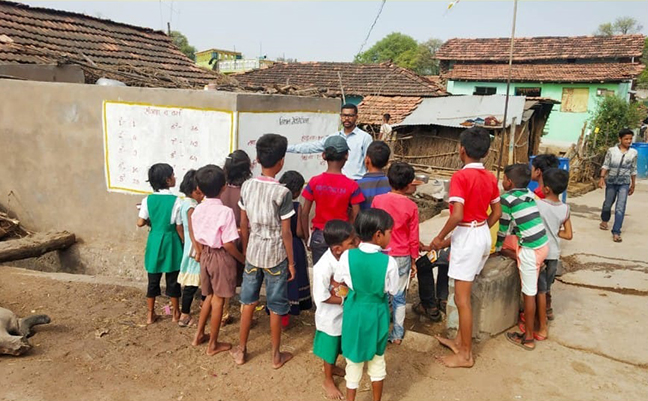 A young engineer from Ghosari Village Akshay Wakudkar was inspired by his father late Sri Haridasji Wakudkar to work for rural youth’s empowerment through the path of an education. Though working at Pune as an Electronic Engineer Akshay always had a dream to fulfil his passion. Whenever he visited his village, he painted a wall or two. Subsequently, his younger brother Omkar joined in and accelerated the pace of the mission. They received very good feedback from village children and peers. The next time on visiting his village, he realized how big a socio-educational change he can bring by organizing his ideas into Mission Mathematics with the help of his friends and well-wishers. So, Akshay decided to give full time dedication to Mission Mathematics and Omkar took the responsibility of serving him with finance. Initially the financial needs of the mission were fulfilled by Akshay’s mother Leela Wakudkar and Brother Omkar Wakudkar. Within the short span of one year (Sept. 2019 to Sept. 2020) MM team has painted approx. 7000 walls in 200 villages from 3 Tehsils and work is in progress.